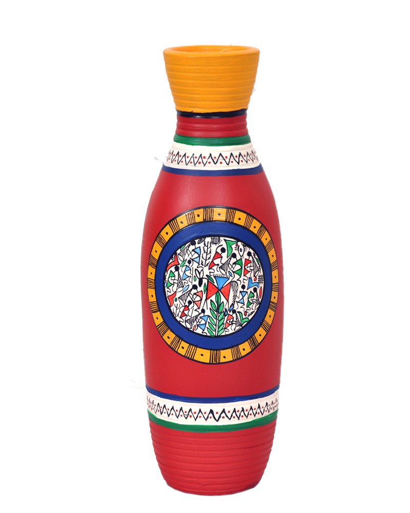 VareEsha Brick Red Handmade Terracotta Warli Painted Vase