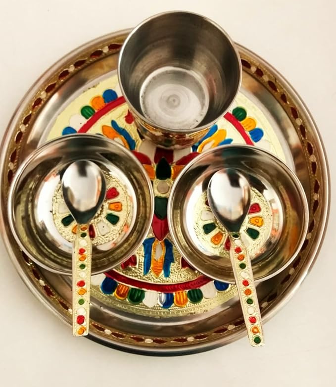 Designer Bhog Plate for God Designed in a Simple Yet Elegant Manner, This Set Serves Multi Purpose use on All Kinds of Festivals Or Occasions.