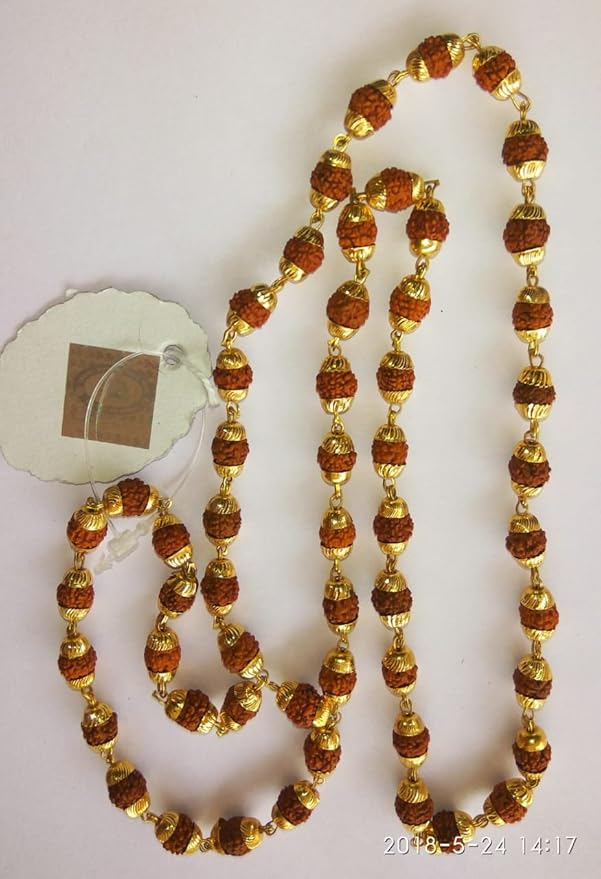 Most Beautiful RUDRAKSHA MALA with GLOD Plated (54+1) Bead with 5 MUKHI RUDRAKSHA